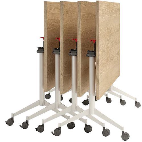 - Table de réunion rectangulaire avec système de pliage simple.