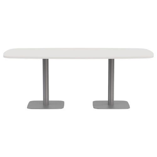 Table de réunion tonneau 2 pieds permettant d'accueillir jusqu'à 6 personnes. Avec deux piétons centraux offrant une grande stabilité à la table sans gêner le passage des jambes. Design intemporel.