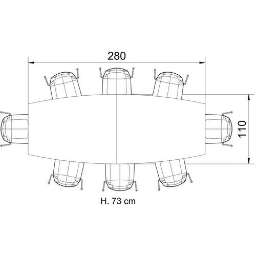 Table de réunion tonneau longueur 280 cm, Type de piétement: 2 pieds, Hauteur: 73 cm, Largeur: 280 cm Table de réunion tonneau longueur 280 cm, Type de piétement: 2 pieds, Hauteur: 73 cm, Largeur: 280 cm