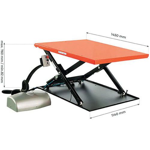 | Intitulé du produit | Table élévatrice électrique 1 T extra plate 1450 x 1140 mm, Force: 1000 kg, Hauteur de levée maxi: 760 mm |