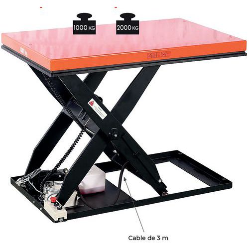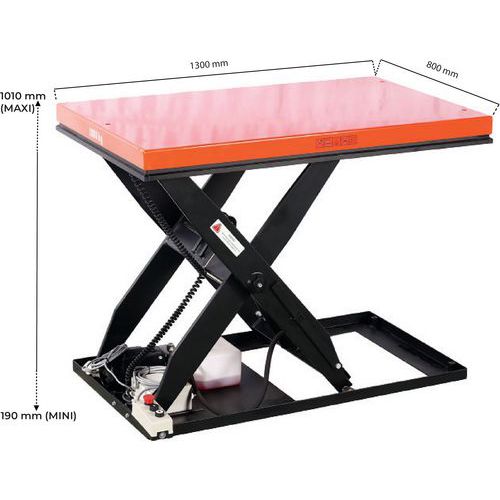 | Intitulé du produit | Table élévatrice électrique 2 T 800 x 1300 mm économique, Force: 2000 kg, Hauteur de levée maxi: 1010 mm |