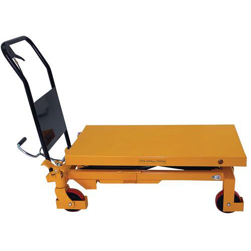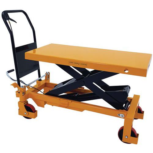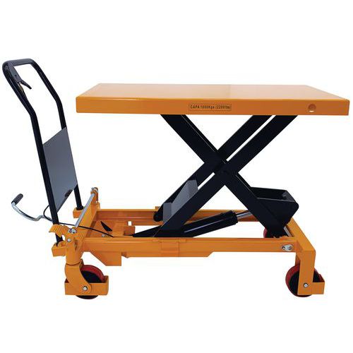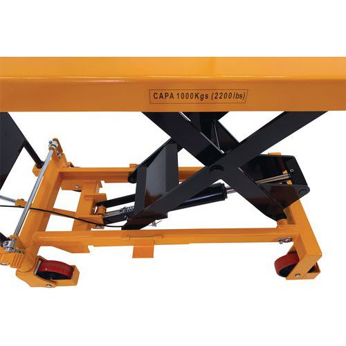 - Table élévatrice à levée hydraulique avec une capacité maximale de 1000 kg.