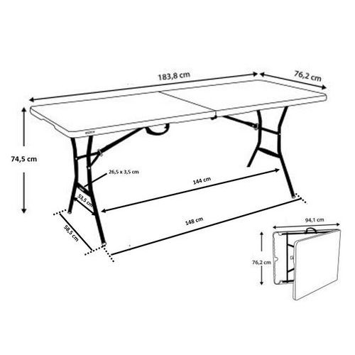 | Intitulé du produit | Table rectangulaire pliante noire, Poids: 13 kg |