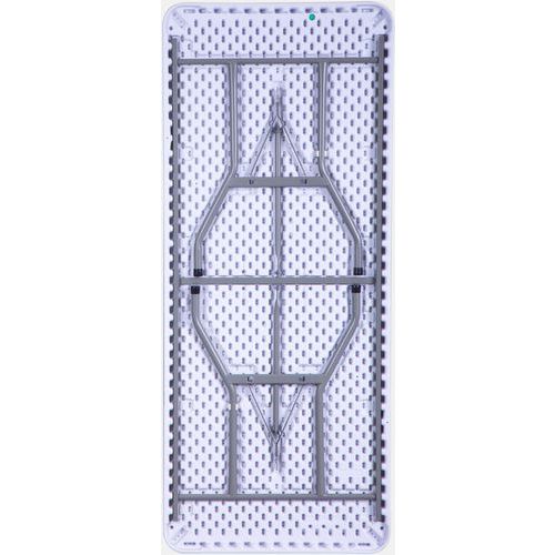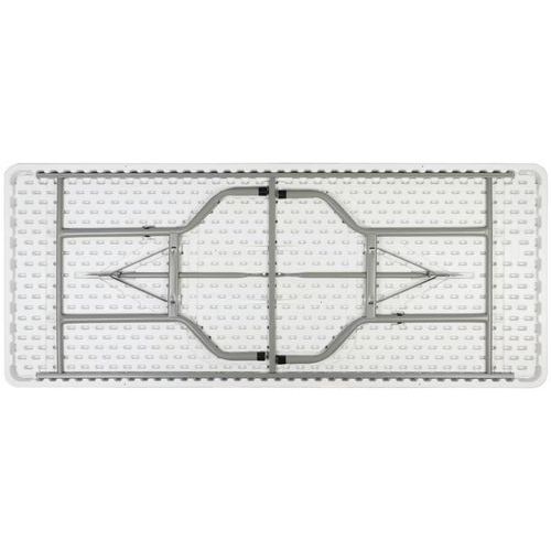 | Intitulé du produit | Table pliante, Capacité (nb de personnes): 6, Plateau coloris: Blanc, Longueurs: 180 cm, Profondeur: 76 cm |