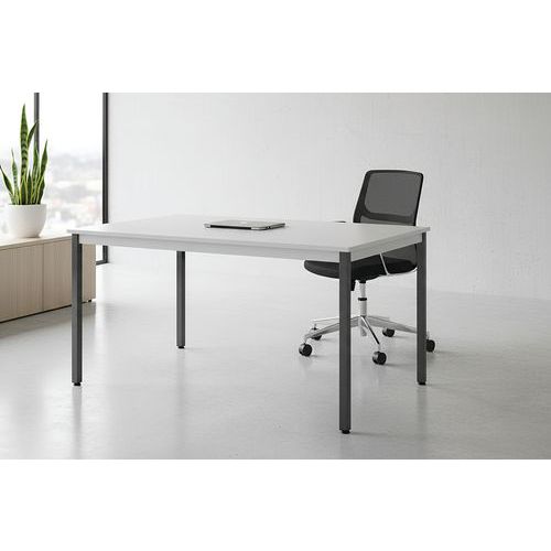 - Table polyvalente avec plateau mélaminé et piètements en métal.