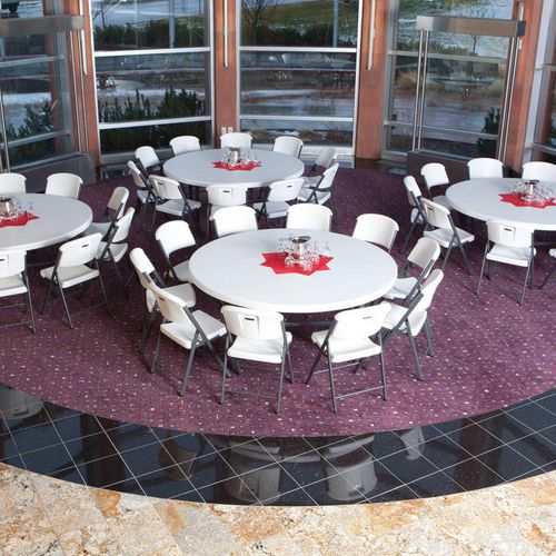 | Intitulé du produit | Table ronde pliante, Type de piétement: 4 pieds, Hauteur: 74 cm, Largeur: 183 mm, Forme: Rond |