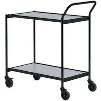 Table roulante avec structure noire - 2 plateaux avec une poignée de conduite.