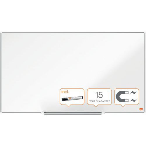 Tableau blanc acier laqué Impression Pro. Surface magnétique de qualité supérieure avec un niveau d'effaçabilité supérieur pour une utilisation fréquente. Cadre fin, moderne et élégant maximisant la surface d'écriture sur le tableau blanc. Système InvisaMount™ facilitant le montage avec des fixations soigneusement dissimulées derrière le tableau blanc. Un auget design pour ranger vos marqueurs et effaceurs.
