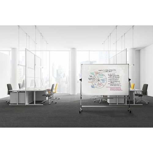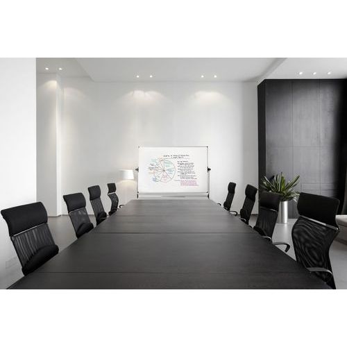 - Le tableau blanc pivotant mobile EARTH Bi-Office allie durabilité, portabilité et design contemporain.