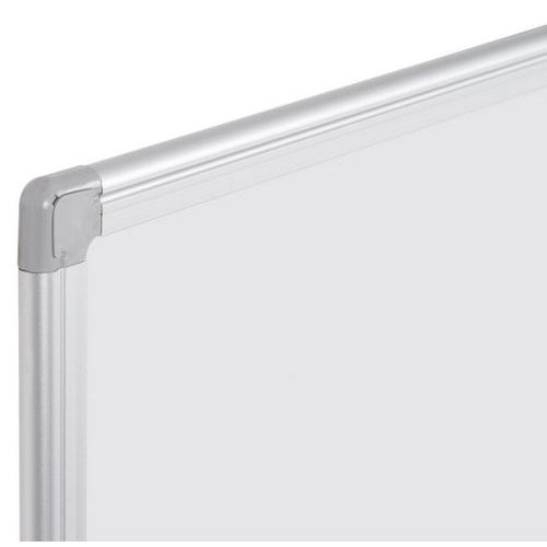 Tableau blanc magnétique pour écrire, effacer, réécrire et afficher des informations avec des aimants. Brainstorm, expliquez et analysez, tout en un seul endroit : la solution idéale pour les centres de formation et les bureaux. Surface émaillée effaçable à sec, lisse et résistante aux rayures, idéale pour un usage intensif. Cadre Maya en aluminium robuste et avec bords et coins arrondis. Système d'installation fiable à 4 coins pour montage mural horizontal ou vertical (kit de fixation inclus). Auget facile à assembler pour les marqueurs effaçables à sec, le nettoyant pour tableau blanc et la brosse. La surface émaillée est une surface d'écriture effaçable à sec, résistante aux rayures, durable mais lisse. I. Fixation murale horizontale ou verticale avec des vis qui traversent les trous des coins en plastique. Système de montage simple, solide et robuste. Solution économique qui permet d'économiser de l'espace.