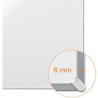 Tableau blanc émaillé Impression Pro. Surface magnétique émaillée, avec un niveau d'effaçabilité supérieur pour une utilisation fréquente. Cadre fin, moderne et élégant maximisant la surface d'écriture sur le tableau blanc. Un auget design pour ranger vos marqueurs et effaceurs. Système InvisaMount™ facilitant le montage avec des fixations soigneusement dissimulées derrière le tableau blanc. Magnétique