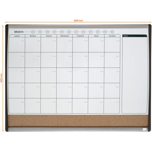 | Intitulé du produit | Tableau magnétique calendrier mensuel Nobo, Largeur: 585 mm, Type: Table mixte, Hauteur: 43 cm |