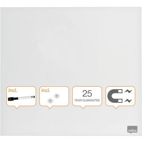 | Intitulé du produit | Tableau mémo carré magnétique, Surface d'écriture: Verre, Hauteur: 450 mm, Magnétique: oui, Nb de faces: 1 |