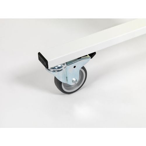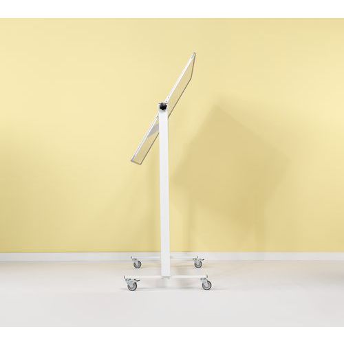 Sa base blanche robuste est dotée d'un long porte-marqueurs et de 4 solides roues de qualité industrielles, dont deux 2 avec freins.