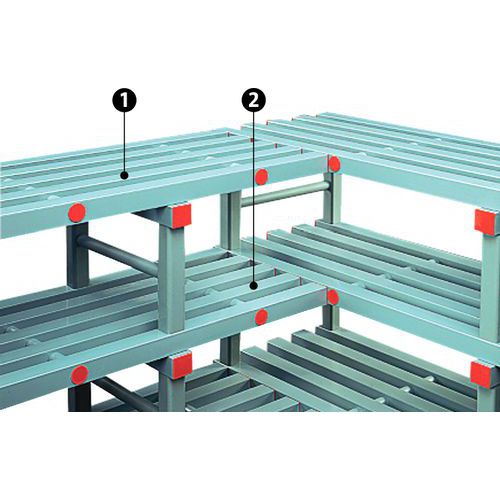 Complétez votre rayonnage Poly-Store à l'aide d'un niveau d'angle. Angles arrondis pour bonne préservation des produits entreposés. Résistance aux sels et acides provenant de denrées alimentaires. Fabrication en matériau synthétique, très résistant et antichocs.