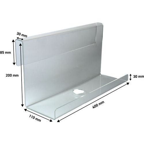 | Intitulé du produit | Tablette de chevet suspendue en acrylique, Épaisseur: 3 mm, Largeur hors tout: 400 mm |