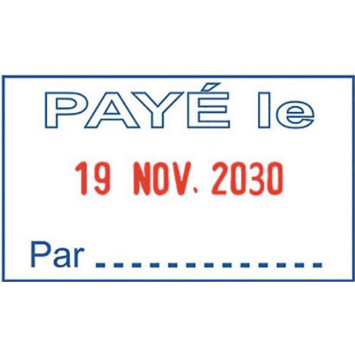 | Intitulé du produit | Tampon Payé le Printy dateur 4750L2, Nb de lignes: 3, Empreinte largeur: 25 mm, Empreinte longueur: 41 mm |