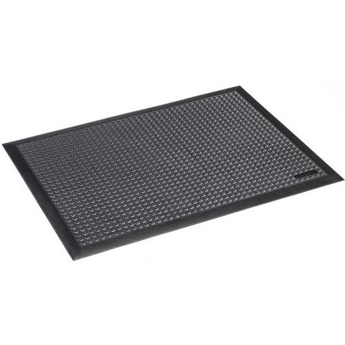 Tapis antifatigue individuel en caoutchouc dissipant statique. Conçu pour évacuer l’électricité des employés afin de leur éviter un désagréable choc statique tout en protégeant les équipements. De développement ergonomique, le Skystep™ utilise le pouvoir de l’air. Le tapis a été conçu pour adhérer au sol afin d’éviter tout glissement. Ces poches d’air, procurent un effet coussin tout en lui conférant un poids léger. Tapis individuels de 13 mm d’épaisseur avec une surface granuleuse pour soulager la fatigue.