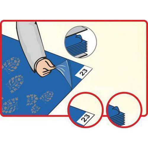 Tapis adhésif avec composant antibactérien. Couche jetable. Convient aux zones sèches. Capturant la poussière et la saleté des chaussures.Tapis adhésif avec composant antibactérien. Couche jetable. Convient aux zones sèches. Capturant la poussière et la saleté des chaussures. Les tapis de nettoyage en couches avec composant antibactérien conviennent aux zones sèches. La surface adhésive des couches individuelles d'une hauteur de 35 microns capture la poussière et la saleté des chaussures ou des roues du camion. Chaque couche est jetable, après quoi elle est simplement arrachée, révélant une nouvelle couche.