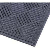 Robuste tapis d'entrée à design breveté «Aqua Dam» avec 4 bordures en tapis renforcé recouvertes de textile agissant comme un bac de rétention pouvant contenir jusque 4 litres d'eau par mètre carré. La surface en textile moulé par injection sur un design en pointe de diamant strié breveté non-directionnel à double effet pour gratter et essuyer la saleté. La semelle en caoutchouc robuste fournit une résistance maximale. Les picots sous la semelle minimisent les mouvements du tapis sur toutes les surface et le surélèvent pour permettre aux sols humides de sécher, même en dessous du tapis.