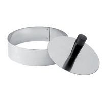 Très pratique pour tasser les ingrédients à l’intérieur des cercles et obtenir ainsi des entremets d’une tenue optimale. Acier inoxydable. Poignée bakélite. Peut également servir de poussoir pour les démouler.