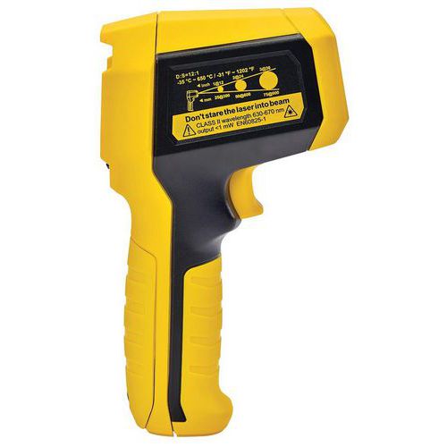 Thermomètre sans contact livré avec pile, notice de fonctionnement, attestation de vérification et sacoche de transport.