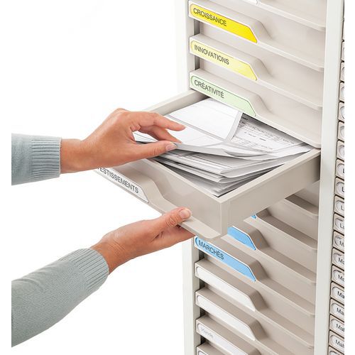 Tiroir avec étiquettes grises, Matériau: Polystyrène, Hauteur hors tout: 8.5 cm, Largeur hors tout: 25 cm