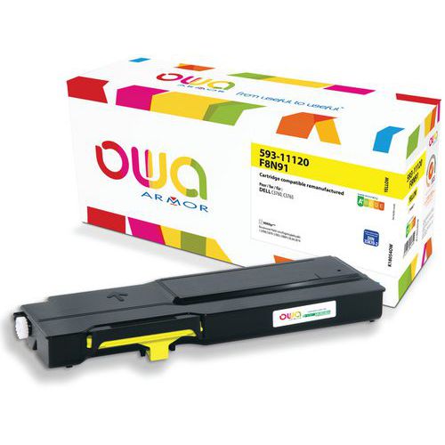 Cartouche remanufacturée de première qualité. Consommables de marque (OEM) collectés après la première utilisation et remanufacturés dans leur forme originale. Rendement de page égal ou supérieur à celui des cartouches à la marque des fabricants d’imprimantes. Qualité d'impression supérieure à la norme d'impression. Toner remanufacturé DELL 593-111 - OWA Économies significatives. L'utilisation d'une cartouche OWA n'affecte pas la garantie du fabricant de l'imprimante.