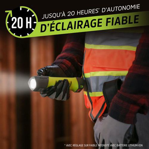 Heures d'autonomie : Cette lampe torche Energizer fiable et durable peut briller jusqu'à 20 heures en mode basse intensité* *Avec batterie lithium-ion.