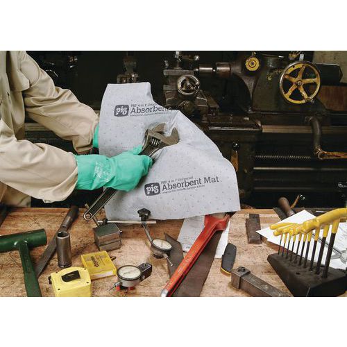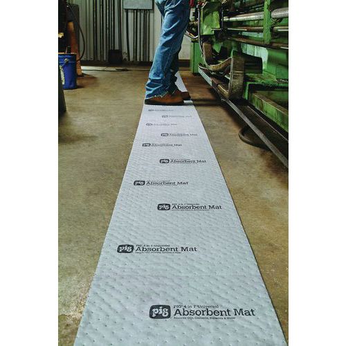 Rouleau placé dans un distributeur en carton léger et facilement transportable grâce à sa poignée. Absorbant perforé tous les 25 cm afin de faciliter la découpe à la main. Résistant à l'usure et aux déchirures. Adapté aux passages piétons fréquents. Déchirement de la feuille à l'aide des perforations tous les 25 cm. Tapis résistant au passage grâce à sa face supérieure. Pliage sous forme de boudin épais à placer près des machines. Utilisable en chiffon pour nettoyer et essuyer.