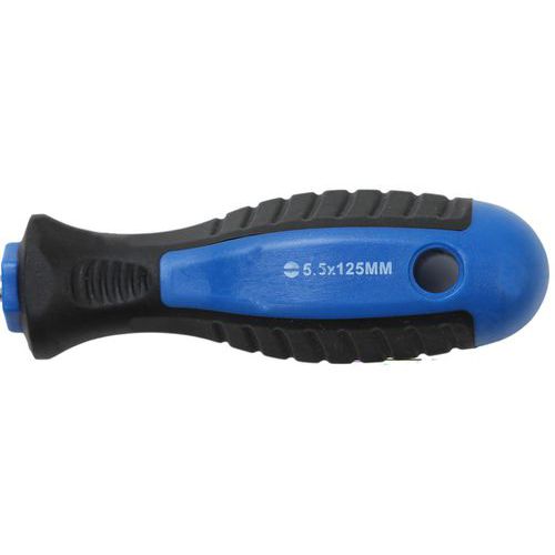 Tournevis de mécanicien pour vis Fente. Manche ergonomique bi-matière offrant confort et bonne prise en main. Extrémité du manche arrondie adaptée à la paume de la main. Lame ronde en acier chrome vanadium avec traitement anti-corrosion très robuste et empreinte traitée brunie pour un meilleur rendu en termes de flexion et de torsion.