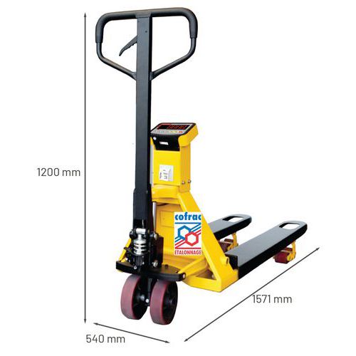 | Intitulé du produit | Transpalette peseur avec imprimante certifié COFRAC, Force: 2000 kg, Fourche longueur: 1160 mm |
