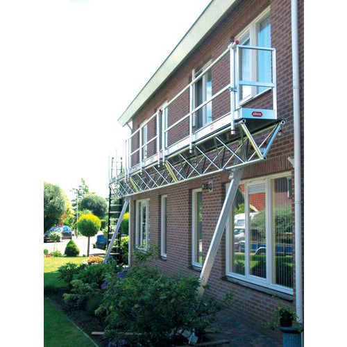 Le Pont Triangle a été spécialement développé pour obtenir des avantages ergonomiques. Le pont triangulaire léger, qui peut être entièrement construit sur le sol, est facile à soulever avec un treuil à main En constituant 2 personnes. En quelques étapes, vous pouvez construire les composants modulaires en un pont de travail complet. De 3 à 5 mètres ou 4 à 6 mètres de hauteur de plateforme. Le pont triangulaire modulaire Altrex est le pont de travail idéal pour tous les travaux d'entretien et de rénovation, ainsi que pour les peintres et les entreprises de plomberie. En combinant les fermes intelligemment conçues de 2, 3 ou 4 m. de longueur. De plus, la forme en V ouverte rend les fermes empilables et donc compactes pour le transport. Les planchers antidérapants et les cadres de main courante avec plinthe et repose-genoux assurent une utilisation sûre. Il existe également une possibilité entre les jetées RS TOWER 5. Avec cela, vous pouvez même atteindre une portée allant jusqu'à 12 m.