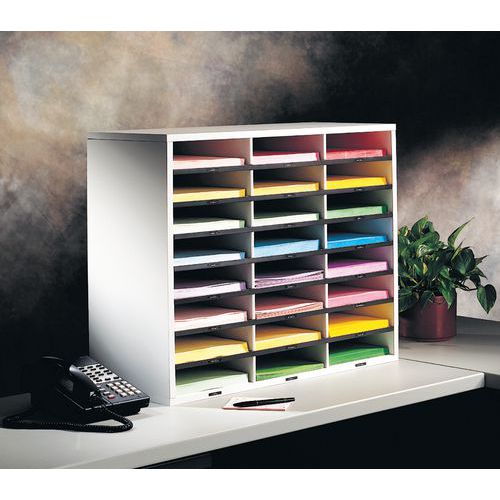| Intitulé du produit | Trieur 24 compartiments, Matériau: Aggloméré, Coloris: Gris clair, Largeur hors tout: 73.7 cm |