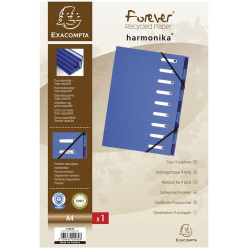 | Intitulé du produit | Trieur HARMONIKA Forever 9 compartiments, Nb de divisions: 9, Coloris: Bleu clair, Matériau: Carton |