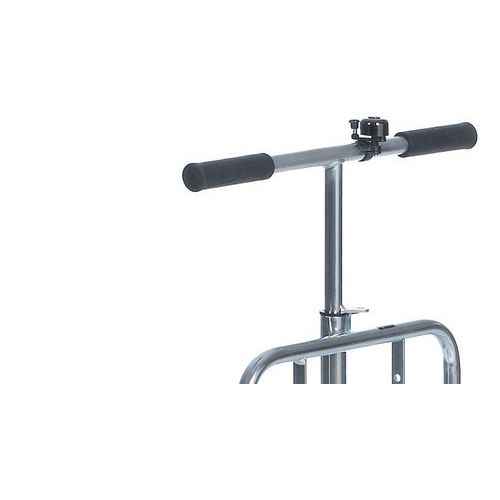 Équipée de poignées en caoutchouc, d’une sonnette de série et d’un frein à pied efficace qui agit sur la roue arrière, qui laisse les deux mains libres pour diriger la trottinette.