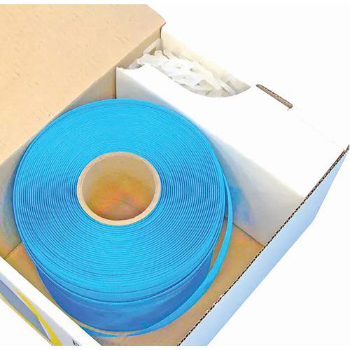 | Intitulé du produit | Trousse cerclage PP bleu, Résistance: 136 kg, Largeur: 12 mm, Épaisseur: 0.55 mm, Longueur: 600 m |