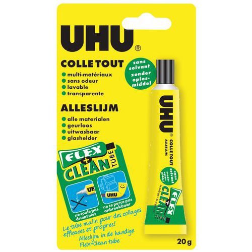 | Intitulé du produit | Tube de colle Flex + Clean, Type de collage: Permanent, Conditionnement: Tube, Contenance: 20 mL |