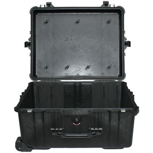 - Valise trolley étanche noire Peli Case 1610, étanche à l'eau, résistante aux chocs et à l'épreuve de la poussière.