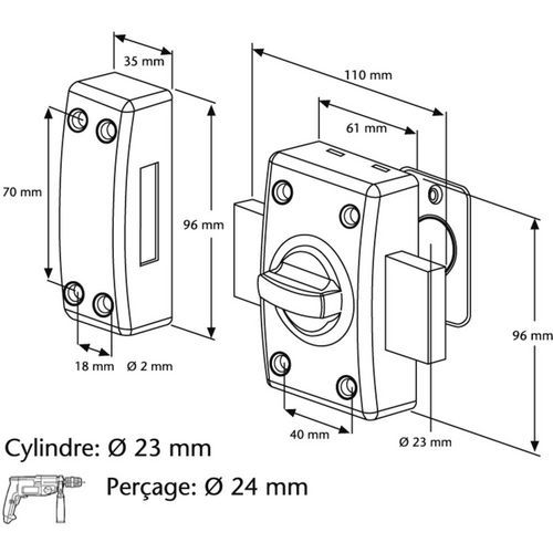 - Coffre et gâche en acier embouti.