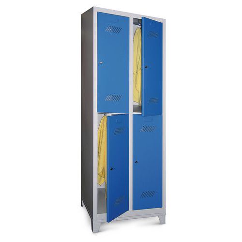 Vestiaire 4 cases penderie Médium - 2 colonnes largeur 300 mm - Sur pieds