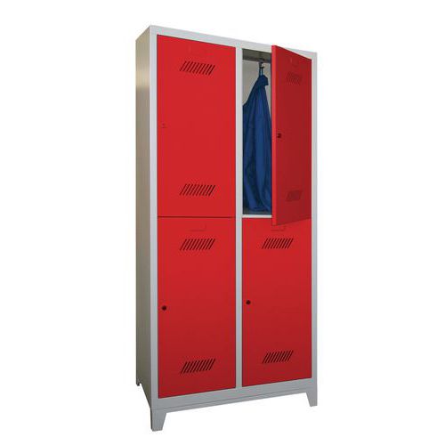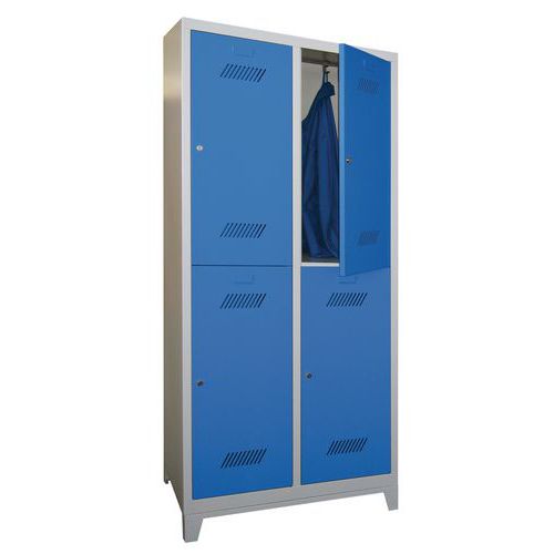 Vestiaire 4 cases penderie Médium - 2 colonnes largeur 400 mm - Sur pieds