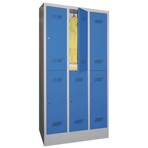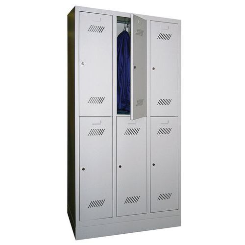 Vestiaire 6 cases penderie Médium - 3 colonnes largeur 300 mm - Sur socle