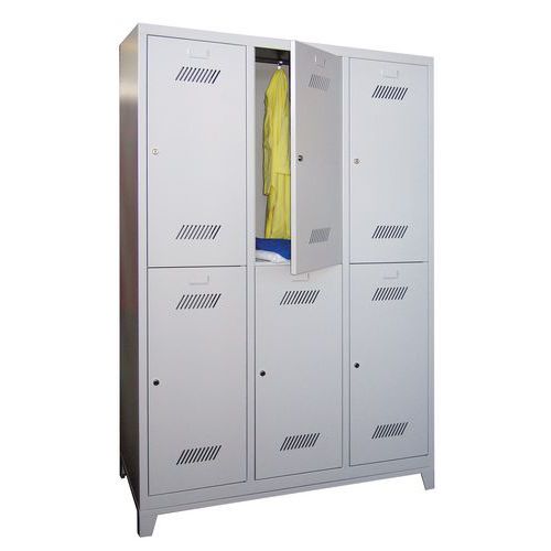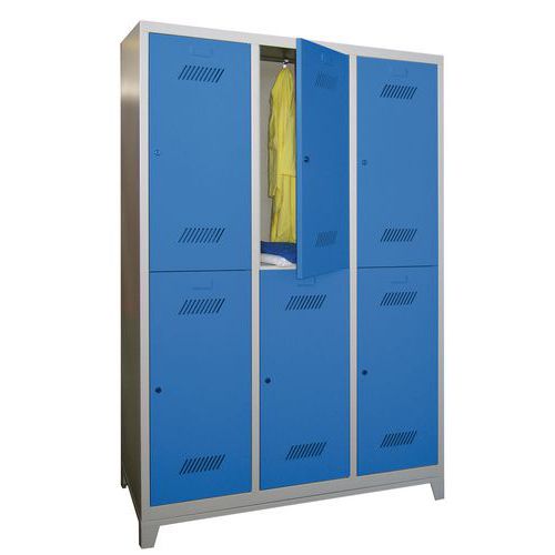 Vestiaire 6 cases penderie Médium - 3 colonnes largeur 400 mm - Sur pieds