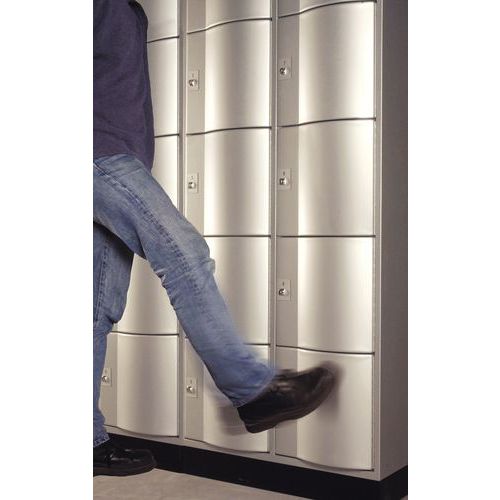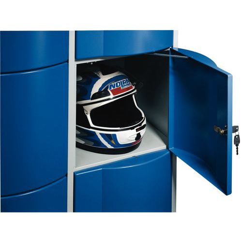 Vestiaire bureau monobloc, robuste, antivandalisme. Portes bombées, indestructibles antieffractions. Revêtement poudreux, résiste aux rayures. Belle finition avec charnières invisibles. Hygiénique avec aération sur l'arrière. Limiteur d'ouverture de porte à 8°.