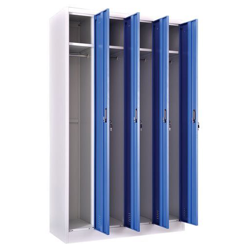 | Intitulé du produit | Vestiaire industrie propre 4 colonnes, Type de vestiaire: À casiers et penderie, Matériau: Acier |