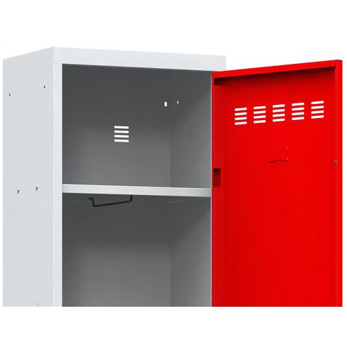 Vestiaires moderne alliant qualité, sécurité et design. Soudés en usine pour assurer une robustesse optimale. Doté d'une qualité très élevé de résistance à l'effraction. Conseils de sécurité : - installer le meuble sur une surface plane - le fixer sur un mur ou une cloison avec une fixation adaptée - veiller à ne pas dépasser la charge maximum conseillée, ainsi qu’à sa bonne répartition