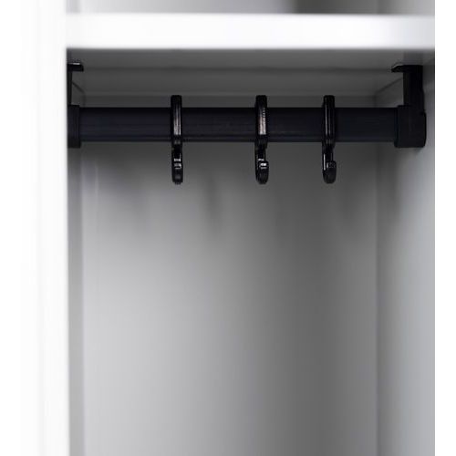Vestiaire d'entrepôt robuste spécial industrie salissante, livré à plat, entièrement démonté. Construction en métal durable avec belle finition revêtement poudre électrostatique. 1 casier haut, 1 penderie inférieure divisée en 2 compartiments par une paroi. Porte renforcée avec charnières invisibles, anti-bruit avec tampon plastique. Porte à double persienne pour circulation d'air et porte-étiquette estampé. Vestiaire confortable d'utilisation avec large ouverture de porte à 115°.