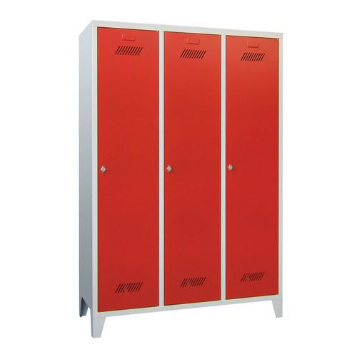 Vestiaire monobloc Medium 400 - Sur pieds - Industrie propre - Moraillon porte-cadenas - 3 colonnes