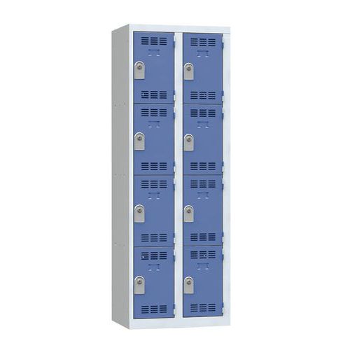 Vestiaire multicases 1 à 4 colonnes avec cases superposées par colonne. De type monobloc, il est soudé en usine pour plus de robustesse et de rigidité. Économique et fonctionnel, grâce à ses larges cases. Permet de ranger différents types d'équipements ou objets. Convient pour les écoles, centres sportifs, hôpitaux, entreprises, secteur tertiaire comme industriel, etc